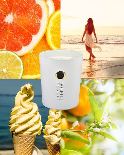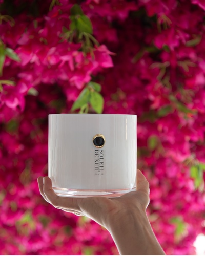 The main collection of Soleil de nuit scented candles is composed of 4 glass jars of 180g (two of which are available in 500g), modern and refined with a progressive cameo and scents between lightness and intensity.
